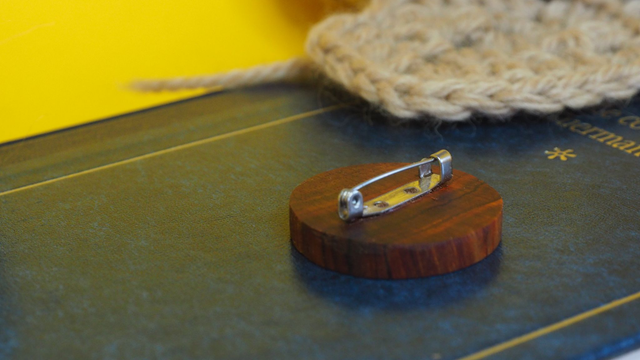 Broche en bois (bois issu de chutes de bois précieux), fait à la main dans les Vosges
